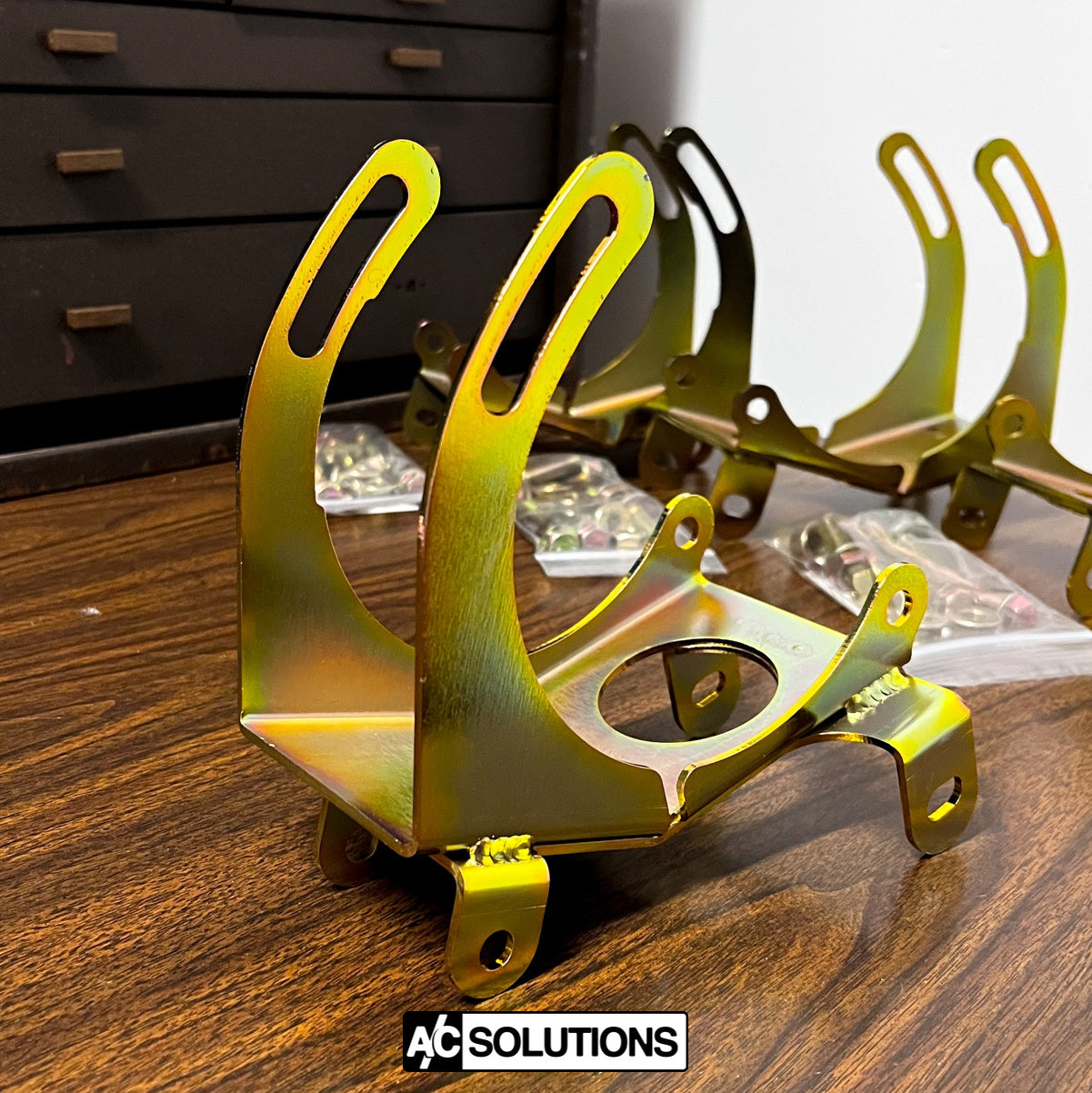 Diese originalgetreue Kompressorhalterung wird verwendet, um den 508 (SD5H14) oder 709 (SD7H15) Kompressor (Keilriemenkonfiguration) an den M20, M21, M30, S38 oder M88 Motorblock unter Verwendung der werksseitigen Motorbefestigung anzupassen. Professionell entwickelt, konstruiert und hergestellt in Kalifornien, wurde es vollständig FEA-getestet und gelbverzinkt, um den härtesten Bedingungen standzuhalten, ohne dabei das OEM-Aussehen zu beeinträchtigen.